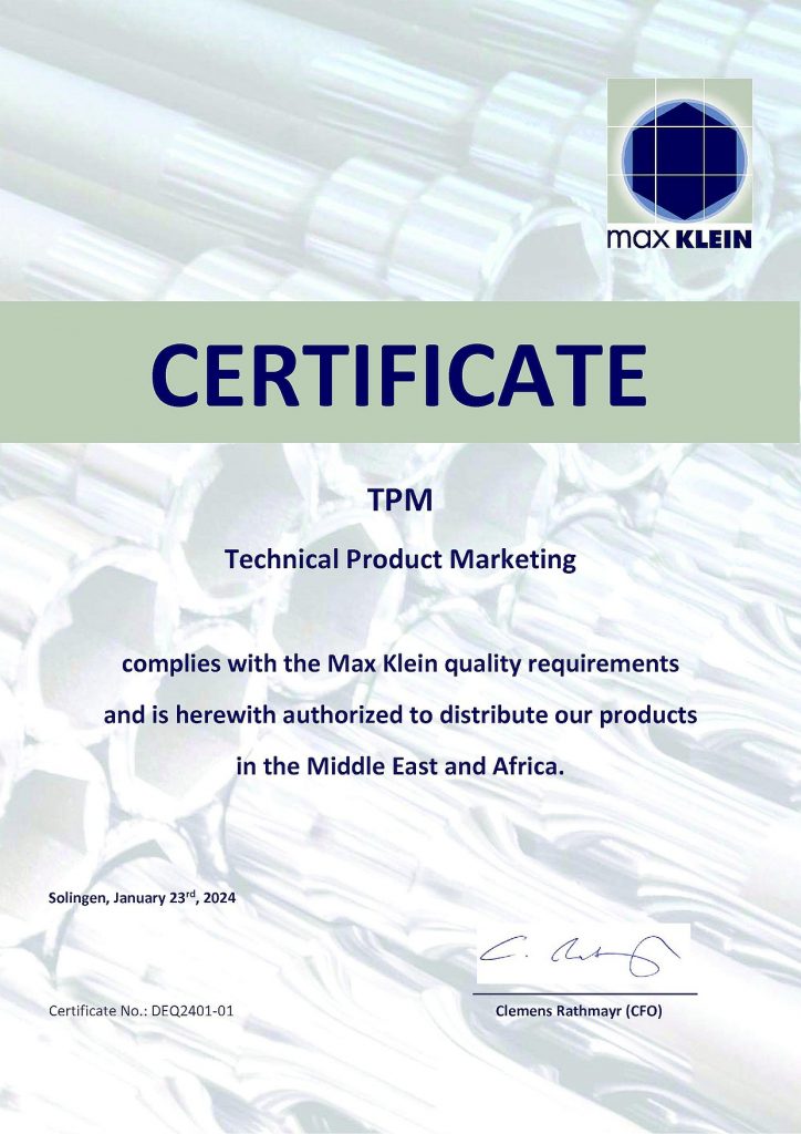 has met Max Klein quality requirements and is therefore authorized to distribute Max Klein products in the Middle East and Africa.