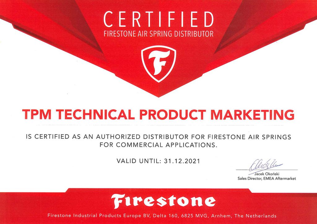 TPM is proud to announce that it has been named FIRESTONE’s Official Commercial Vehicle Air Springs Distributor for 2021.